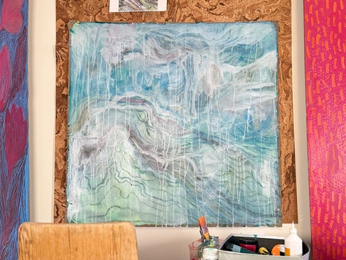 אם דיברתי על יוגה ועל פודקאסטים, אני חייבת לדבר על הציור. בשבתות אני אוהבת לשים באוזניות ספר קולי, פודקאסט או מוזיקה, ולצלול לתוך קנבס. אני תמיד שואפת שייצא משהו יפה - ברור. אבל למדתי שהיופי הוא לא היעד. הוא תוצר לוואי של התהליך. יש ימים שאני מציירת שעות ויוצא משהו שאני רוצה למסגר, ויש ימים שאני מציירת שעות ומוחקת הכול. פעם הייתי מתבאסת. היום אני יודעת: ככה נראית יצירה. שכבות. ניסיון. חקירה. שינוי כיוון. יש בזה המון נחת - כי זה מזכיר לי שהחיים עצמם הם לא תוצר מושלם, אלא תנועה של כיסוי וחשיפה.